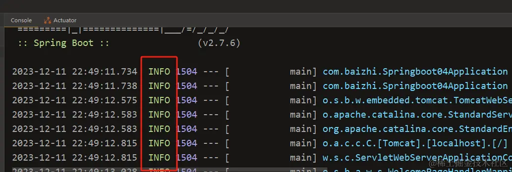 启动springboot时,根全局日志就会按照默认的INFO级别,自动输出信息