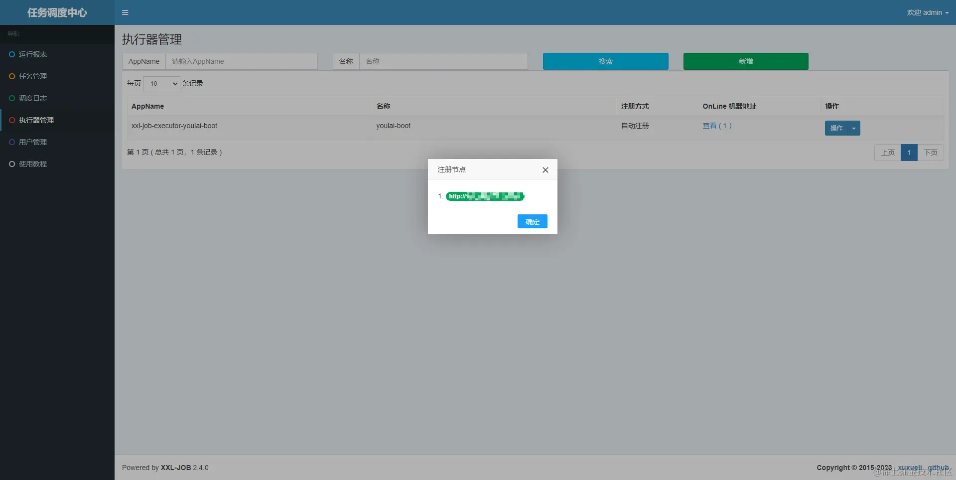 调度中心管控台地址:http://localhost:8080/xxl-job-admin