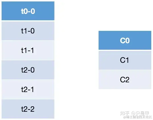 Range Range的重分配策略,首先计算各个Consumer将会承载的分区数量,然后将指定数量的分区分配给该Consumer。假设存在两个Consumer,C0和C1,两个Topic,t0和t1,这两个Topic分别都有三个分区,那么总共的分区有6个,t0-0,t0-1,t0-2,t1-0,t1-1,t1-2。分配方式如下: