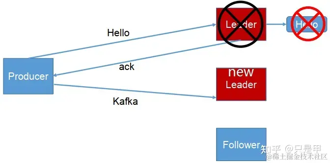 1:producer等待broker的ack,partition的leader落盘成功后返回ack,如果在follower同步成功之前leader故障,那么将丢失数据。(只是leader落盘)