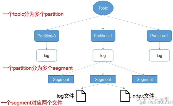 Topic是逻辑上的改变,Partition是物理上的概念,每个Partition对应着一个log文件,该log文件中存储的就是producer生产的数据,topic=N*partition;partition=log