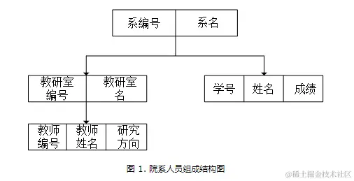 如图1,以学校某个系的组织结构为例,说明层次数据模型的结构。