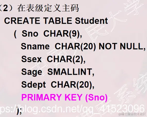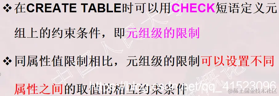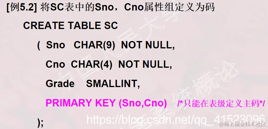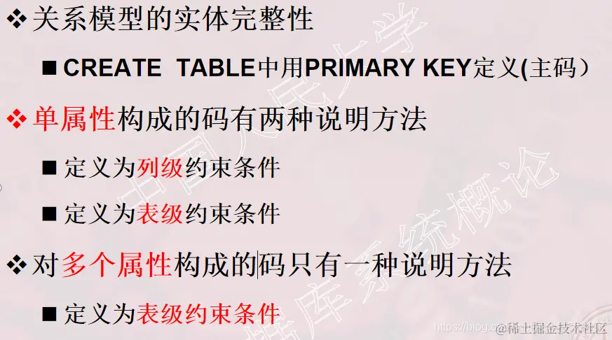 (主码约束的定义、外码约束的定义和参照完整性的定义和修改删除规则、属性约束的定义)、表级约束和属性级约束的区分。