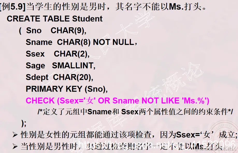 用户定义的完整性就是针对某一具体应用的数据必须满足的语义要求
