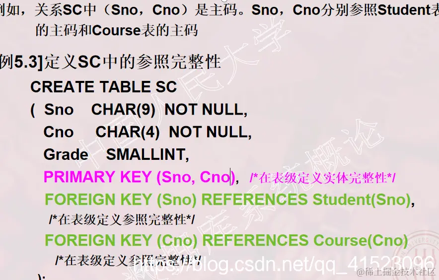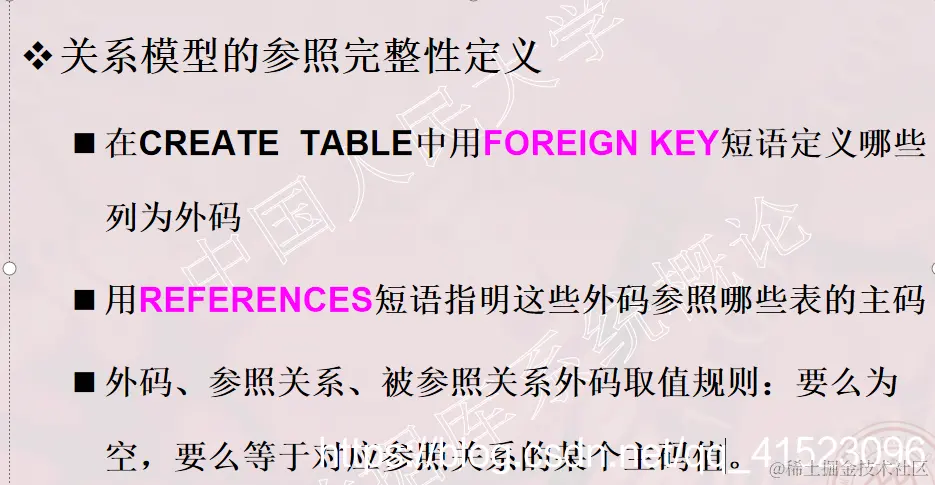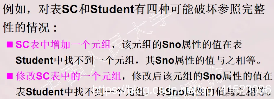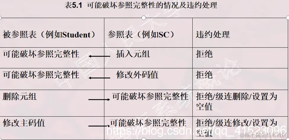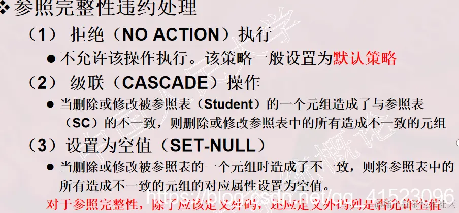 (外码是否允许取空值,删除、修改被参照关系的元组时的考虑。)