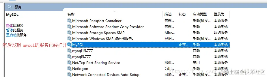 然后打开 mysql服务