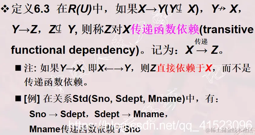 包括:函数依赖、平凡函数依赖与非平凡函数依赖、完全函数依赖、部分函数依赖、传递函数依赖的定义理解和应用(即能区分不同的函数依赖)