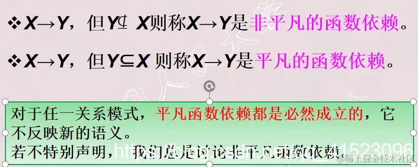 (包括:函数依赖、平凡函数依赖与非平凡函数依赖、完全函数依赖、部分函数依赖、传递函数依赖的定义理解和应用)