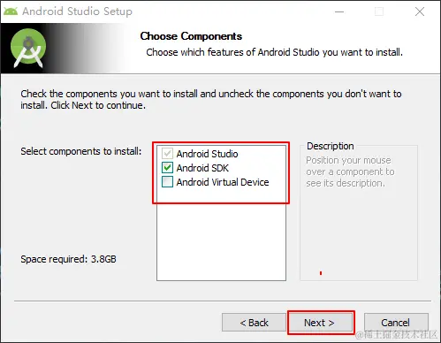 (2)选择需要安装的组件,Android Studio主程序默认已勾选,