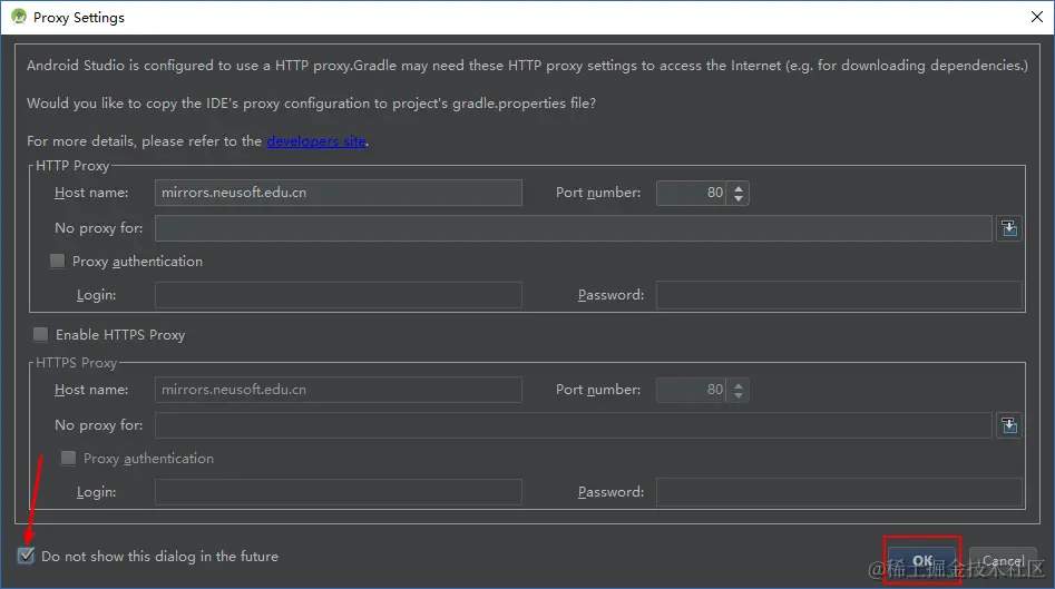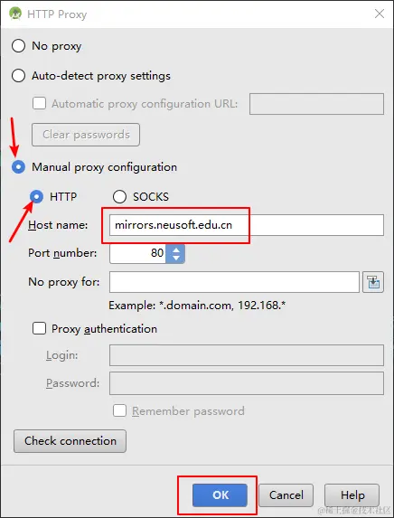 (12)具体配置见图,Host name: mirrors.neusoft.edu.cn
