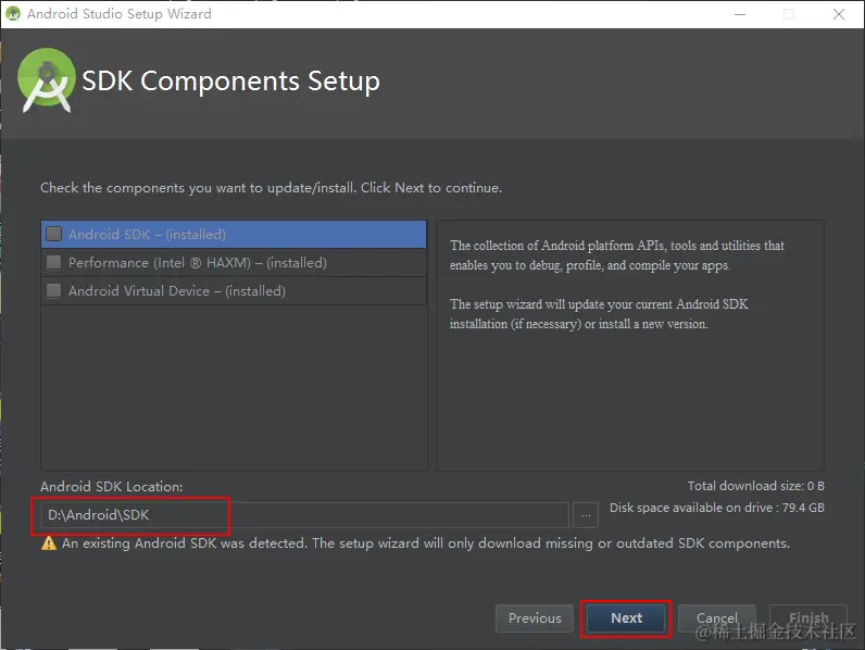 (4)这是Android Studio 和 SDK 的默认安装路径