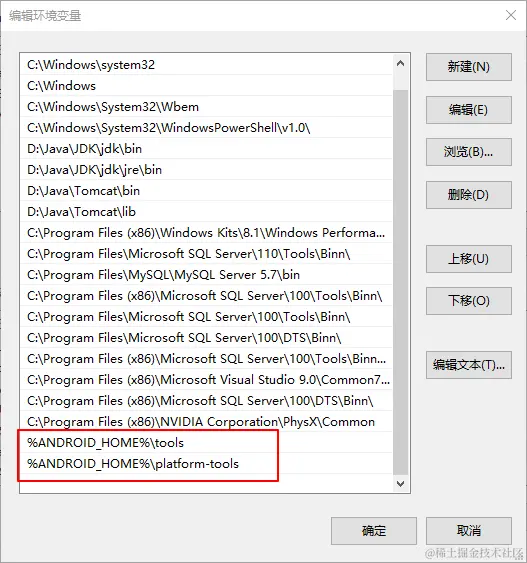 变量值:%ANDROID_HOME%\tools;%ANDROID_HOME%\platform-tools