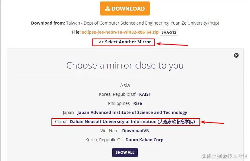 用过Eclipse的应该知道,Eclipse的下载页面的镜像网站之一就是大连东软信息学院
