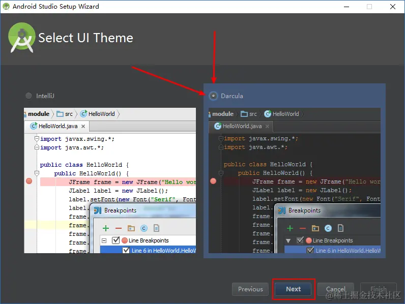 (17)这里选择Darcula主题,护眼