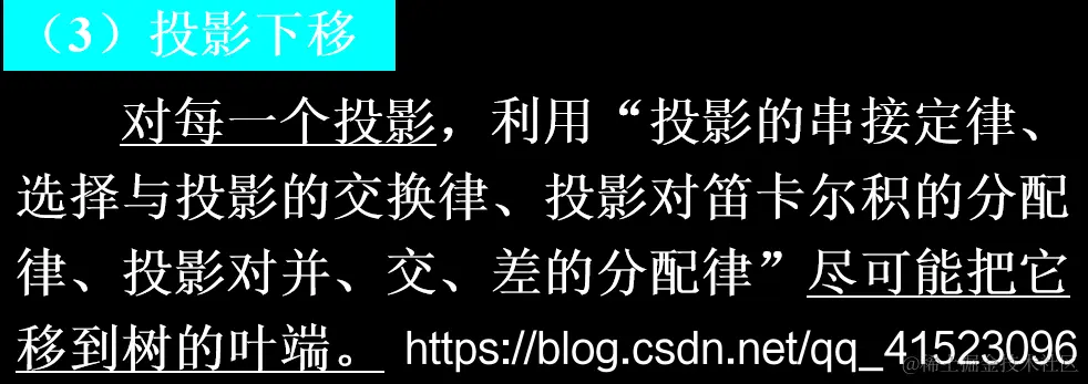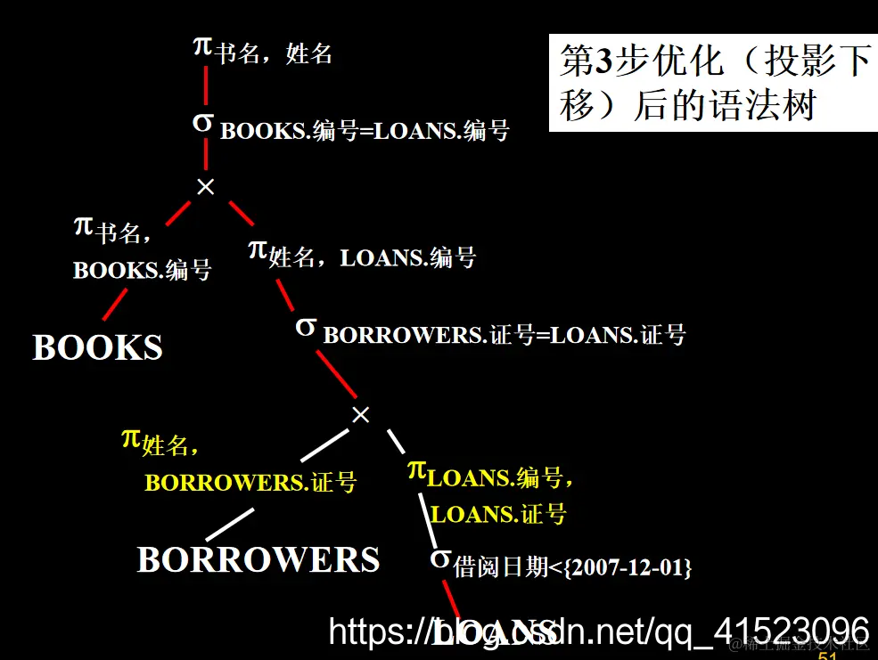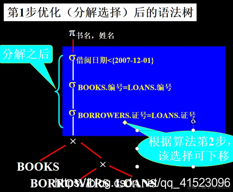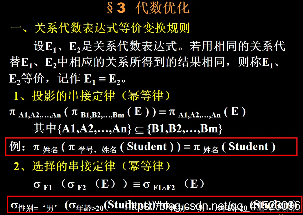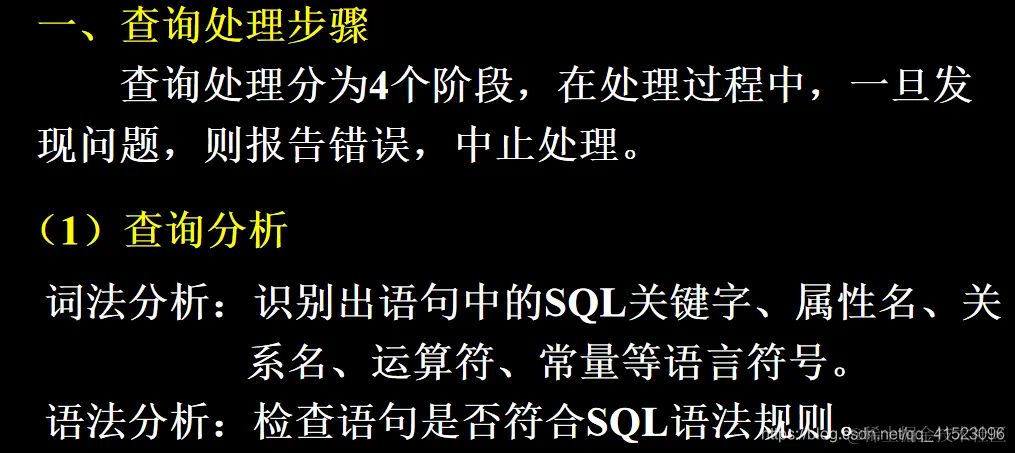 《数据库系统概论》| 第九章 关系查询处理与优化 知识梳理 TwcatL_tree 2023-12-12 62 阅读1分钟 关系查询处理与优化 目录 关系查询处理与优化 9.1 关系数据库系统的查询处理 9.2 关系数据库系统的查询优化 9.3 代数优化 查询树的启发式优化 9.4 物理优化 1、查询处理步骤 2、查询树的启发式优化规则(P284) 习题:P290 5 综合题 9.1 关系数据库系统的查询处理 9.2 关系数据库系统的查询优化 9.3 代数优化 查询树的启发式优化 9.4 物理优化