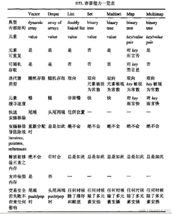 STL容器能力表: