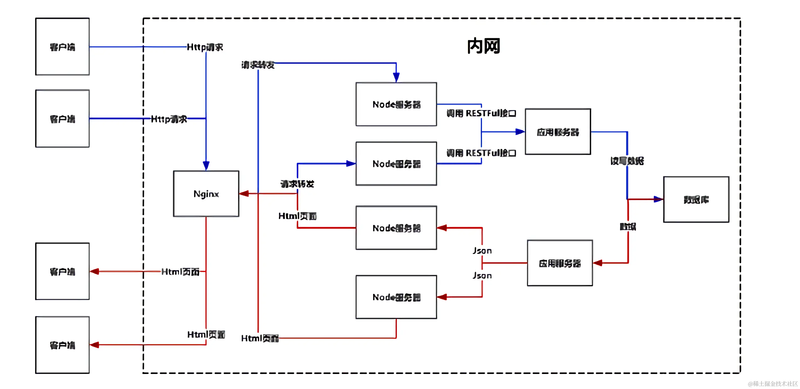 比如:前一个用户访问index.html, 经过Nginx-Node-应用服务器-数据库链路之后,Nginx会把index.html返回给用户,并且会把index.html缓存在Nginx上,