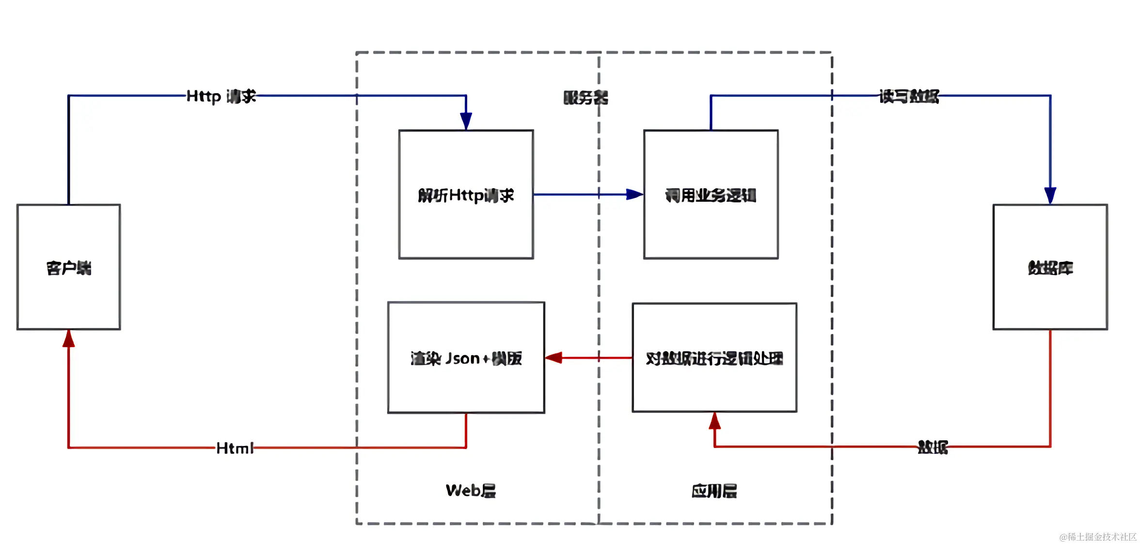 第二种:客户端-web服务器-应用服务器-数据库