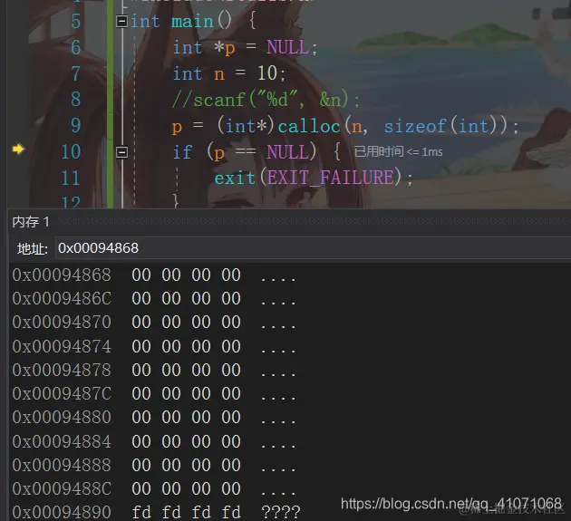 所以如何我们对申请的内存空间的内容要求初始化,那么可以很方便的使用calloc函数来完成这个需求。