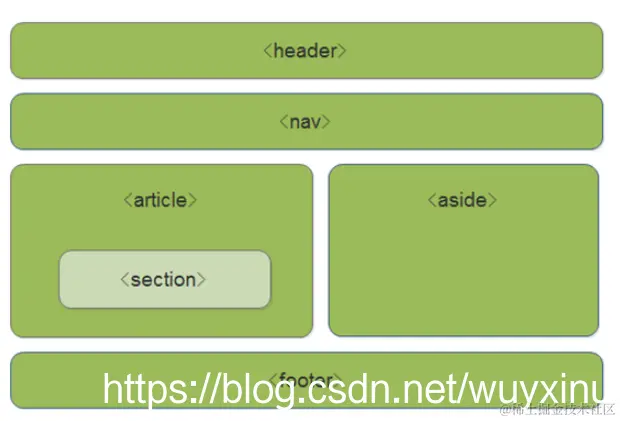 header--- 头部标签nav--- 导航标签article--- 内容标签section--- 块级标签aside--- 侧边栏标签footer--- 尾部标签