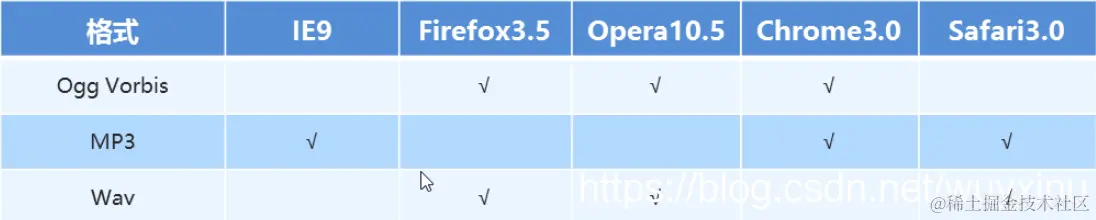 - 可以在不使用标签的情况下,也能够原生的支持音频格式文件的播放,