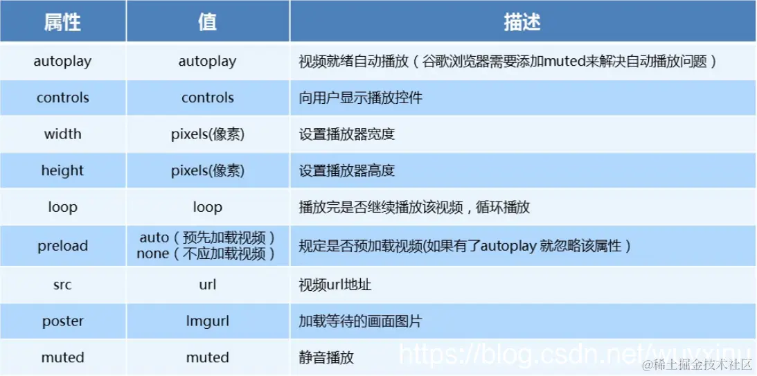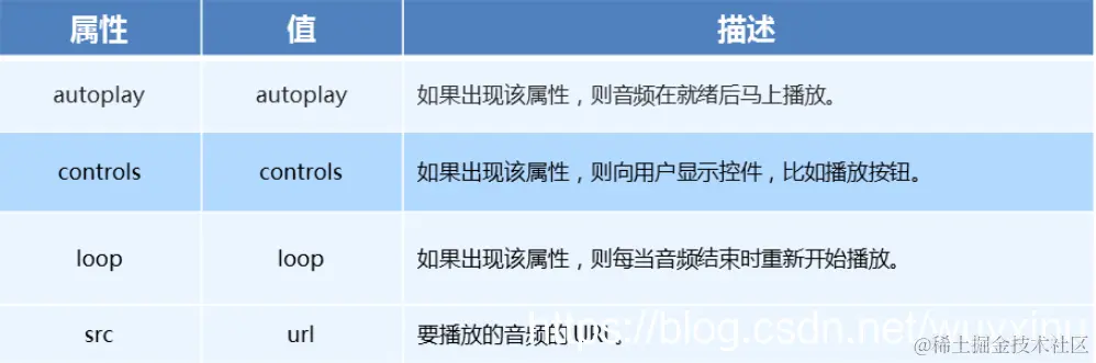 - 音频标签与视频标签使用基本一致