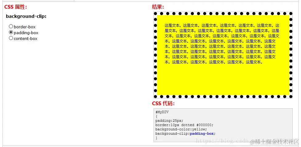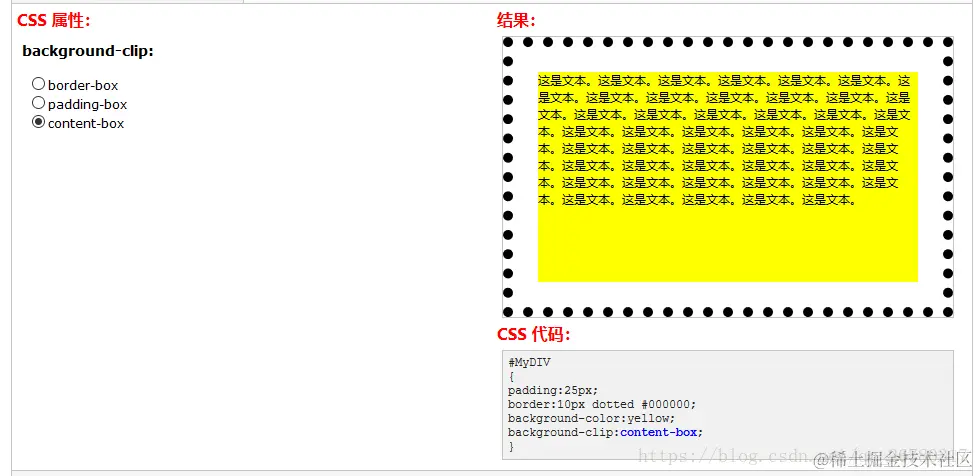 background-clip:content-box;背景被裁剪到内容框。