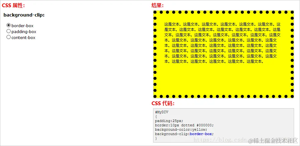 (3)背景裁剪(Background clip)属性: