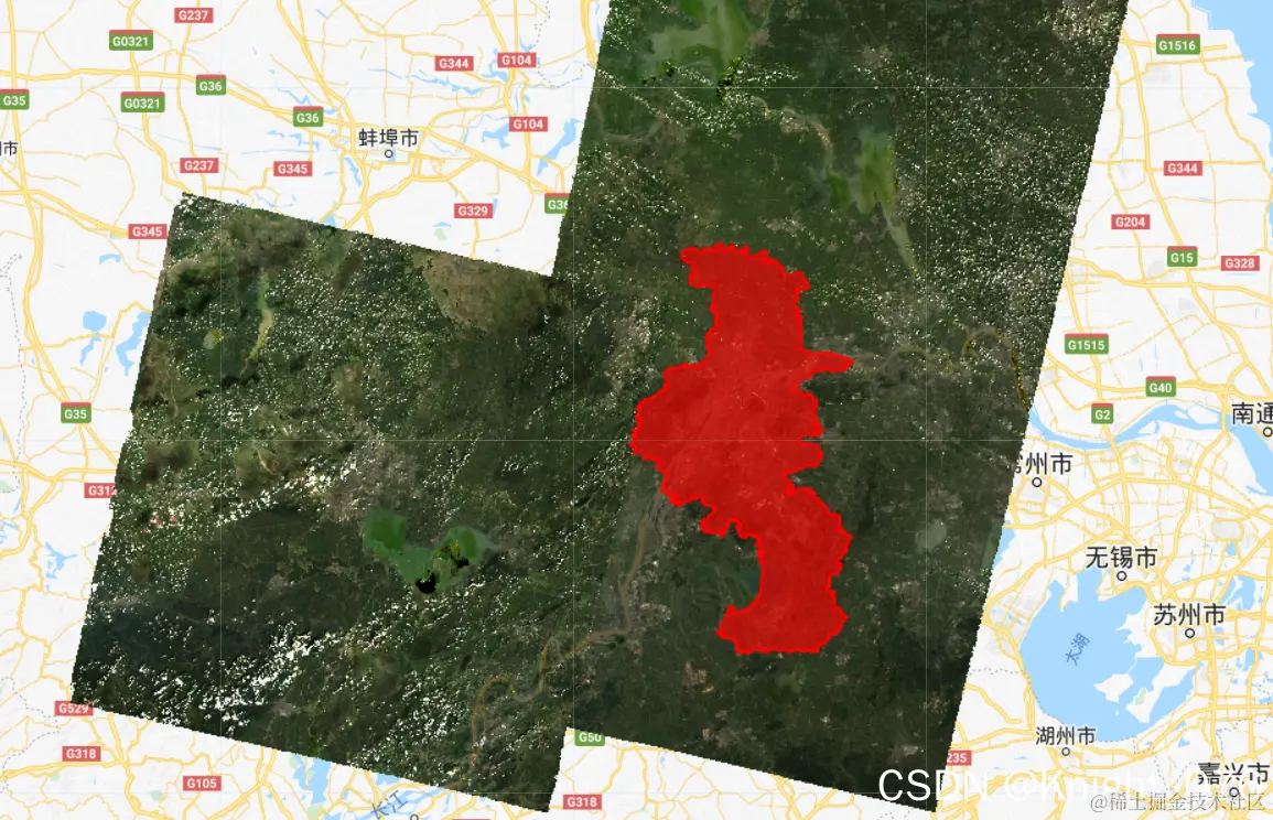 我们可以发现影像超出研究区所在范围,这里我们实现在地图上完成对影像的裁切,代码如下: