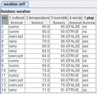例如如下的属性声明说明“outlook”属性有三种类别:“sunny”,“ overcast”和“rainy”。而数据集中每个实例对应的“outlook”值必是这三者之一。