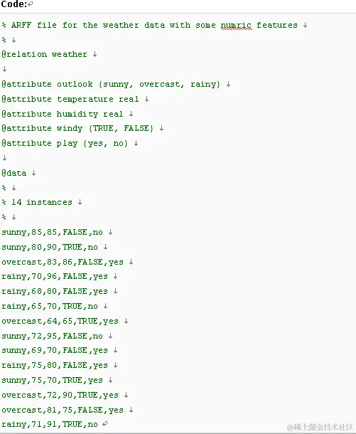 以“%”开始的行是注释,WEKA将忽略这些行。如果你看到的“weather.arff”文件多了或少了些“%”开始的行,是没有影响的。