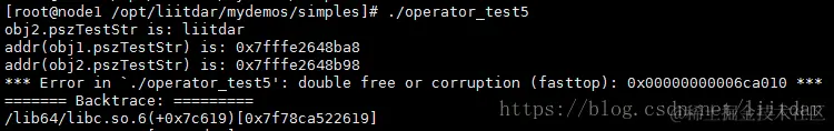 上述错误信息说明:当obj1和obj2进行析构的时候,由于重复释放了一块内存,导致程序崩溃报错。在这种情况下,就需要我们重载赋值运算符“=”了。