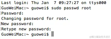 注意:有些情况下,在输入完sudo passwd root命令之后、修改密码之前,还需要输入该普通用户的密码。
