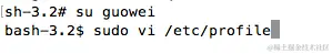 在root用户下具有系统所有权限,在对相关文件进行修改之后,我们可以继续利用su guowei命令回到普通用户(guowei)下来,如下图所示: