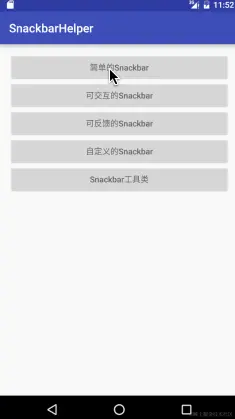 刚才已经说过Snackbar比Toast强大,其中有一点就是Snackbar可以用来与用户交互,我们看一下效果: