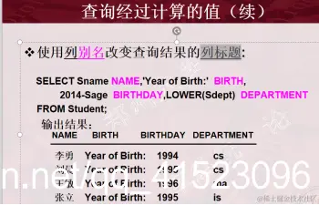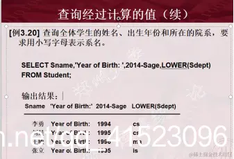 SELECT子句的<目标列表达式>不仅可以为表中的属性列,也可以是表达式