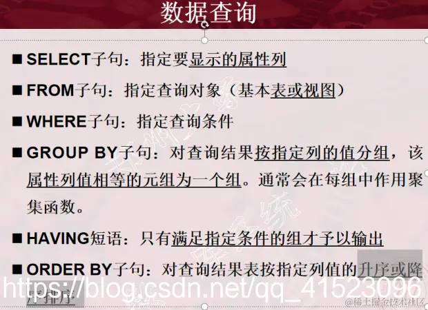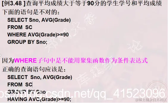 GROUP BY子句 (WHERE子句中是不能用聚集函数作为条件表达式)