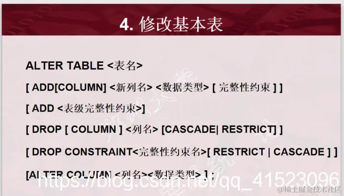 基本表的定义、修改