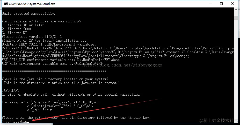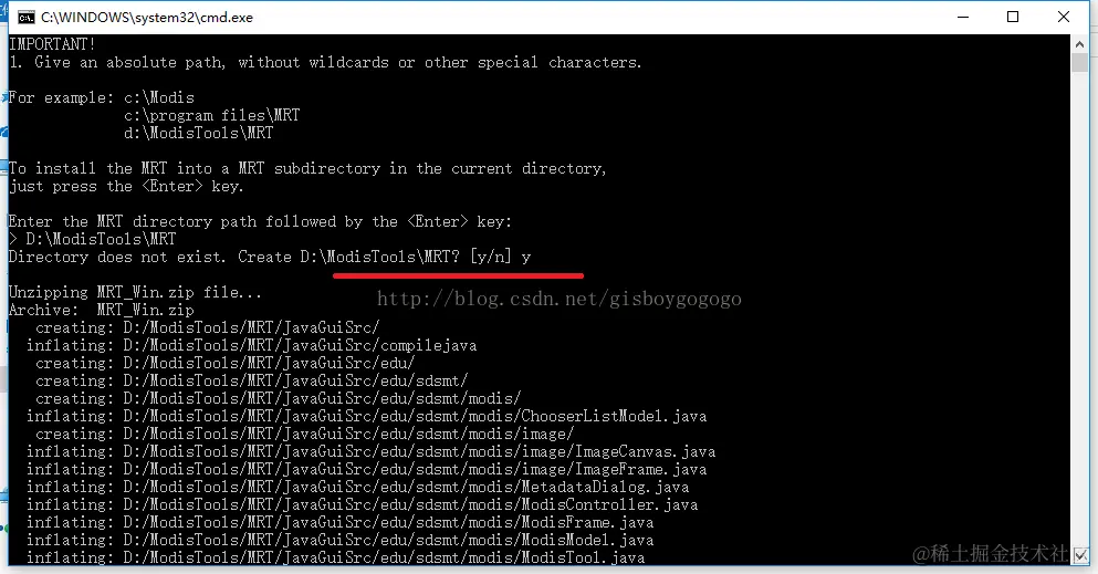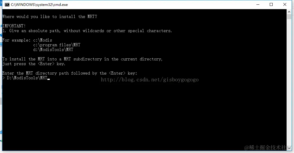 4.输入该软件安装所在目录:D:\ModisTools\MRT