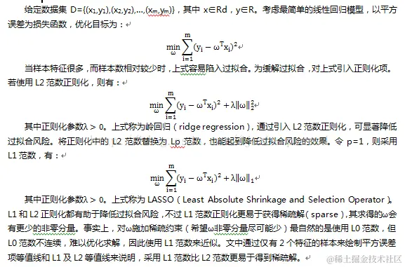 在过滤式和包裹式特征选择方法中,特征选择过程与学习器训练过程有明显的分别;与此不同,嵌入式特征选择是将特征选择过程与学习器训练过程融为一体,两者在同一个优化过程中完成,即在学习器训练过程中自动地进行了特征选择。