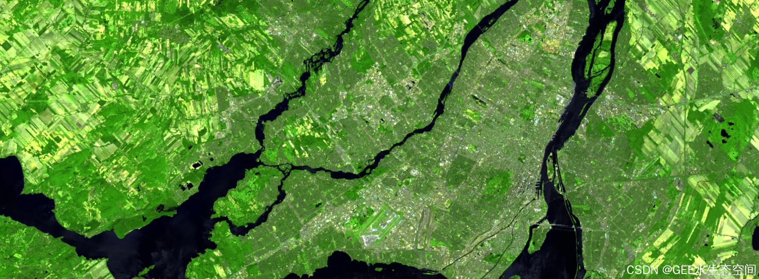 我们使用两个不同(但相关)的假彩色图像对加拿大蒙特利尔的最终描绘,突出了农业和城市地区以及水道之间的差异。