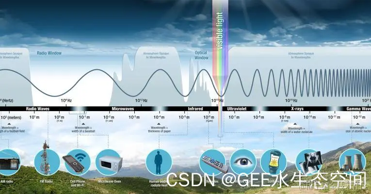 广泛的电磁能量和形式的例子。请注意,该光谱的可见部分非常窄!图片来源:美国宇航局。
