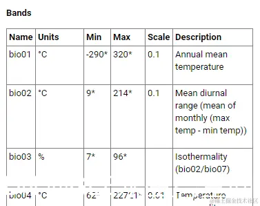 GEE 的 WorldClim 版本 1 元数据示例。