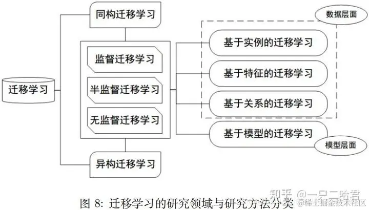迁移学习按学习方法分类,可以分为四个大类:基于样本的迁移学习方法、基于特征的迁移学习方法、基于模型的迁移学习方法、基于关系的迁移学习方法。