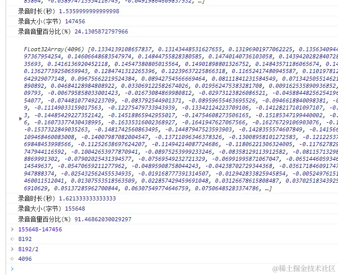 直接输出e.inputBuffer.getChannelData(0),控制台是这样的,那说明这是一个Float32Array数据
