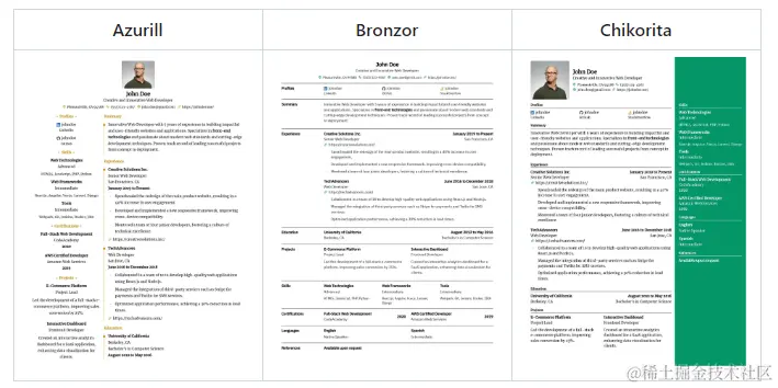 一款免费的开源简历构建器,提供了友好方便的创建,更新和共享简历的过程。可以在官方平台中创建和管理自己的简历,也可以自托管。支持多种语言,数十个模板,即时编辑和拖放自定义组件并可以与 OpenAI 集成来通过 AI 改进自己的简历。创建完简历后,可以通过个性化链接与潜在的雇主共享,跟踪简历的浏览数据或下载,非常方便,可以不断的打磨自己的简历。
