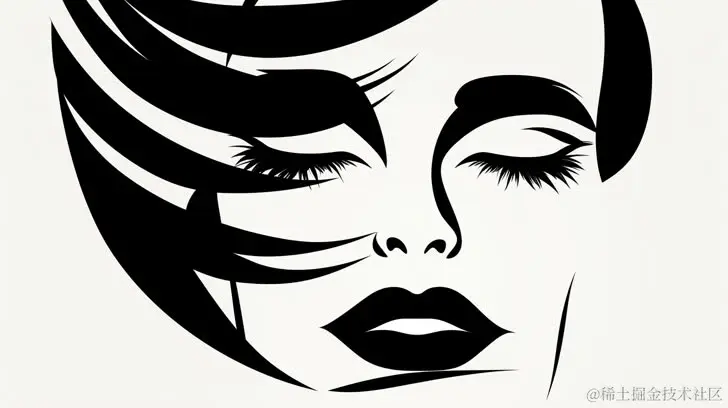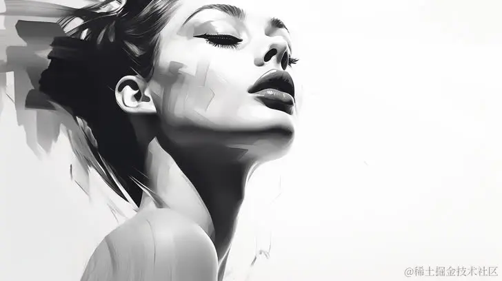 在这一女性面部的照片插图中,以优雅的负空间和刷子的巧妙运用为特色。黑白的配色,镶嵌着纯银的亮点,结合了芭蕾学院和动态写实的动画元素,呈现出一种独特而充满魅力的图像。