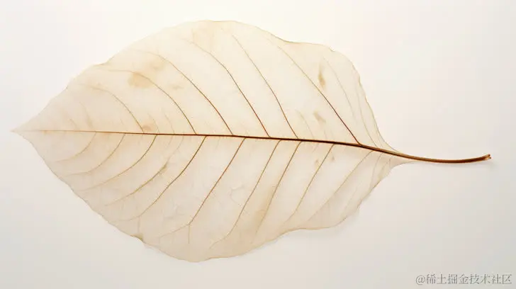 一片棕色的叶子矗立在白色背景中,精致而纤巧的线条,透明的色彩,展现出一种极致纯净的感觉。