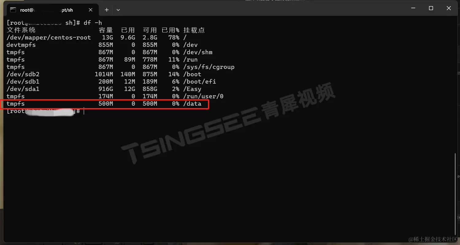 2、挂载完成后使用df-h,看到挂载500M的ramdisk的磁盘;
