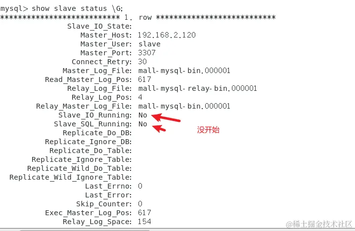 change master to master_host='192.168.2.120', master_user='slave', master_password='123456', master_port=3307, master_log_file='mall-mysql-slave1-bin.000001', master_log_pos=617, master_connect_retry=30;